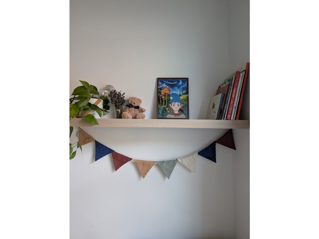 Díky přírodním materiálům a klidnému vizuálnímu stylu se výsledek stane jemnou ozdobou dětského pokoje i milou připomínkou společného času.