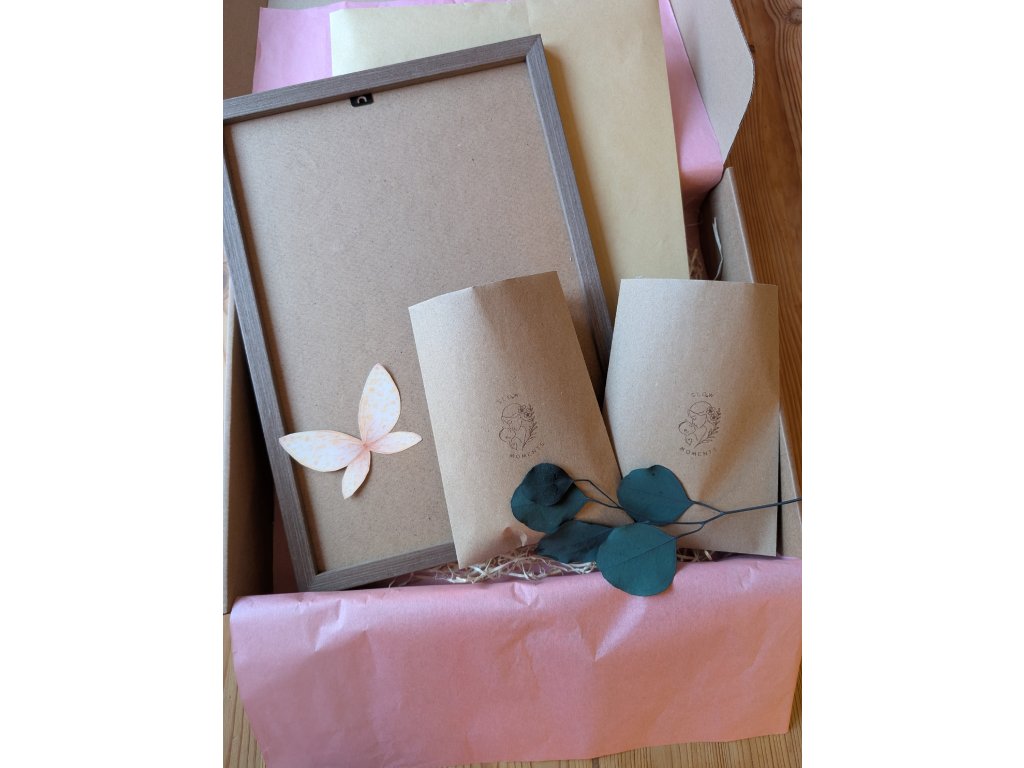V boxu najdete vše potřebné k vytvoření malé luční dekorace – závěsného obrázku, který si dítě může s radostí pověsit do svého pokoje.